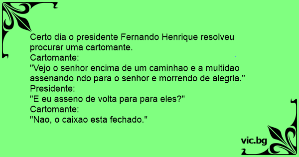 Certo dia o presidente Fernando Henrique resolveu procurar uma cartomante.