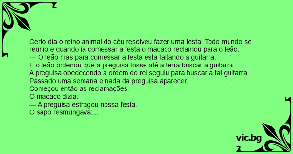 E o leão ordenou que a preguisa fosse até a terra buscar a guitarra.
