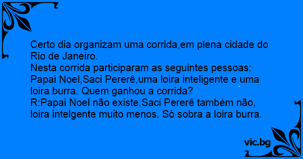 Papai Noel,Saci Pererê,uma loira inteligente e uma loira burra. Quem ganhou a corrida?