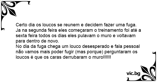 No dia da fuga chega um louco desesperado e fala pessoal não vamos mais poder fugir (mas porque) perguntaram os loucos é que os caras derrubaram o muro!!!!!!