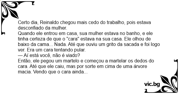 Certo dia, Reinaldo chegou mais cedo do trabalho, pois estava desconfiado da mulher.
