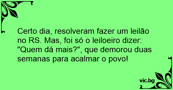 Certo dia, resolveram fazer um leilão no RS. Mas, foi só o leiloeiro dizer: