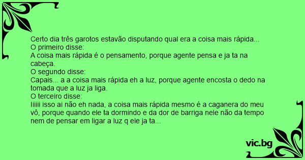 Certo dia três garotos estavão disputando qual era a coisa mais rápida...