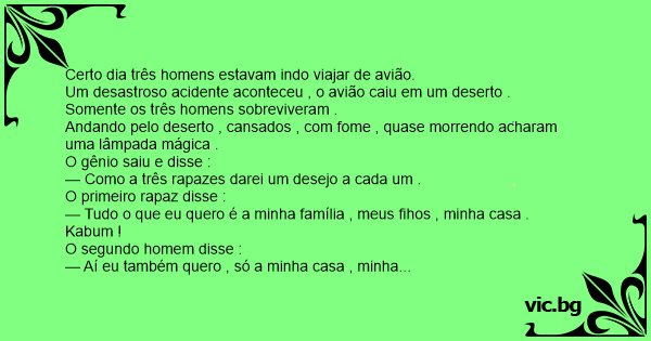 Andando pelo deserto , cansados , com fome , quase morrendo acharam uma lâmpada mágica .