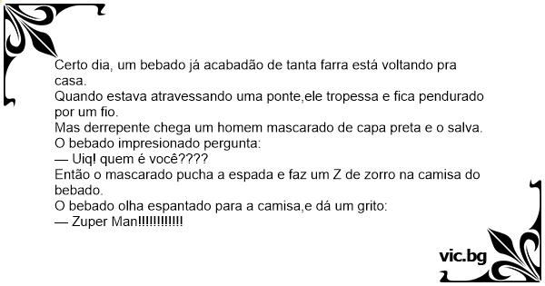 Então o mascarado pucha a espada e faz um Z de zorro na camisa do bebado.