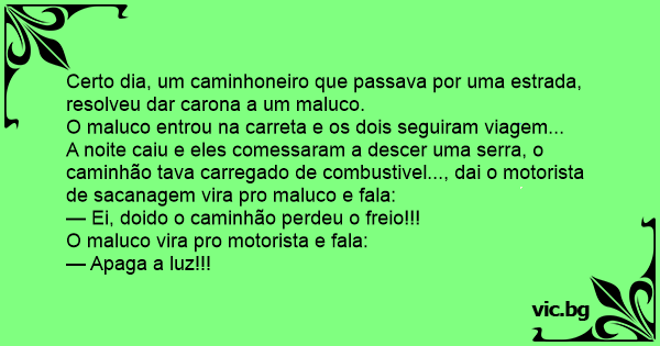 A noite caiu e eles comessaram a descer uma serra, o caminhão tava carregado de combustivel..., dai o motorista de sасаnаgем vira pro maluco e fala: