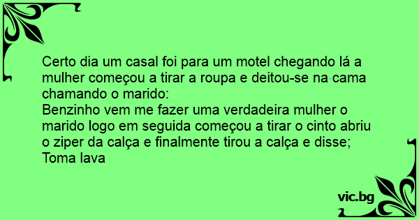Certo dia um casal foi para um motel chegando lá a mulher começou a tirar a roupa e deitou-se na cama chamando o marido: