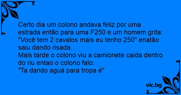 Certo dia um colono andava feliz por uma estrada então para uma F250 e um homem grita: