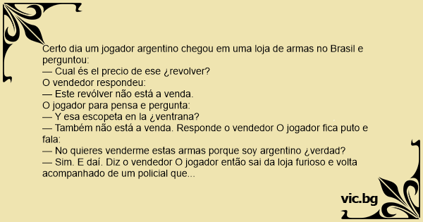 Certo dia um jogador argentino chegou em uma loja de armas no Brasil e perguntou: