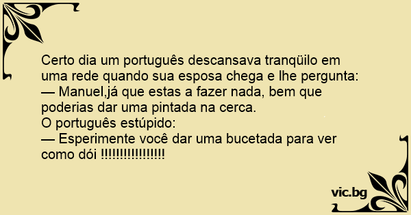 Certo dia um português descansava tranqüilo em uma rede quando sua esposa chega e lhe pergunta: