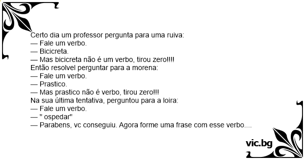 — Mas bicicreta não é um verbo, tirou zero!!!!