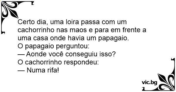 Certo dia, uma loira passa com um cachorrinho nas maos e para em frente a uma casa onde havia um papagaio.