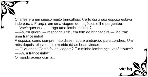 — Oi querida! Como foi de viagem? E a minha lembrança, você trouxe?