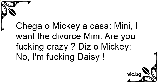 Chega o Mickey a casa: Mini, I want the divorce Mini: Are you fuскing crazy ? Diz o Mickey: No, I'm fuскing Daisy !