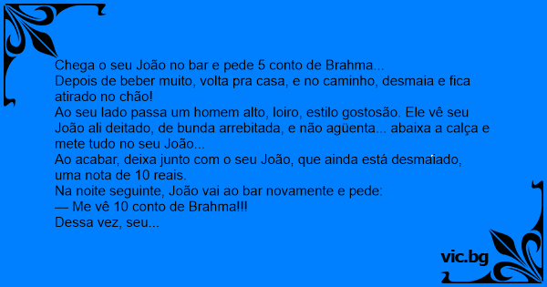 Chega o seu João no bar e pede 5 conto de Brahma...