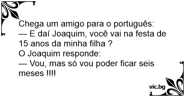 — E daí Joaquim, você vai na festa de 15 anos da minha filha ?