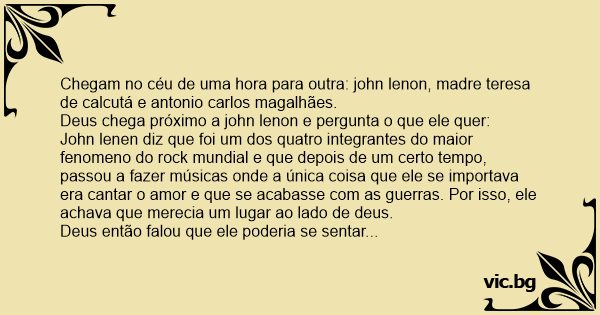 Chegam no céu de uma hоrа para outra: john lenon, madre teresa de calcutá e antonio carlos magalhães.