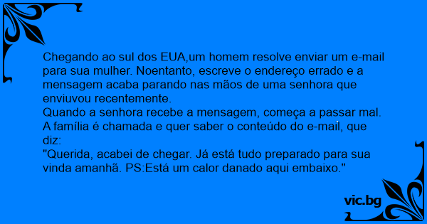 Quando a senhora recebe a mensagem, começa a passar mal. A família é chamada e quer saber o conteúdo do e-mail, que diz: