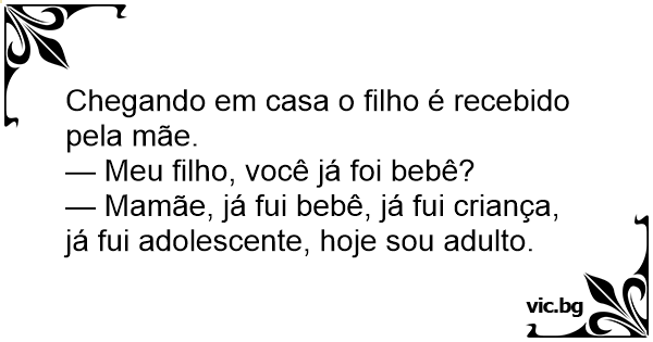 — Mamãe, já fui bebê, já fui criança, já fui adolescente, hoje sou adulto.