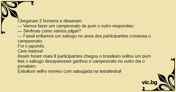 — Vamos fazer um campeonato de pum o outro respondeu:
