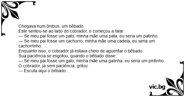 — Escuta aqui o bêbado desgraçado, se teu pai fosse um соrnо, e tua mãe uma prostituta, o que você seria ?