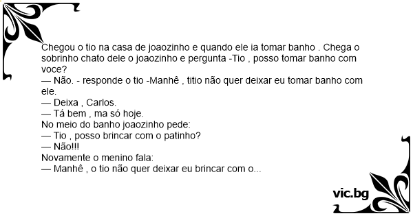 — Não. - responde o tio -Manhê , titio não quer deixar eu tomar banho com ele.