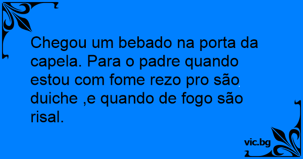 Chegou um bebado na porta da capela. Para o padre quando estou com fome rezo pro são duiche ,e quando de fogo são risal.