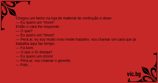 Chegou um fanho na loja de material de contrução e disse: