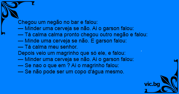 Chegou um negão no bar e falou:
