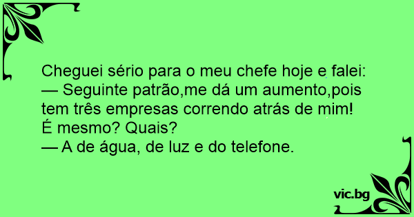 — Seguinte patrão,me dá um aumento,pois tem três empresas correndo atrás de mim!