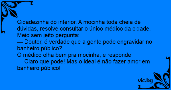 — Doutor, é verdade que a gente pode engravidar no banheiro público?