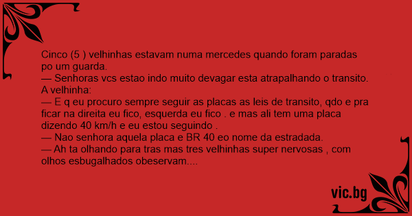 Cinco (5 ) velhinhas estavam numa mercedes quando foram paradas po um guarda.