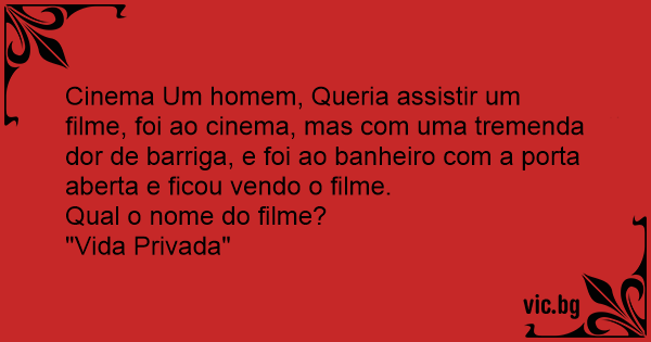 Cinema Um homem, Queria assistir um filme, foi ao cinema, mas com uma tremenda dor de barriga, e foi ao banheiro com a porta aberta e ficou vendo o filme.