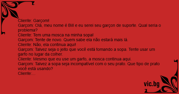 Cliente: Tem uma mosca na minha sopa!