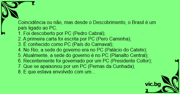Coincidência ou não, mas desde o Descobrimento, o Brasil é um país ligado ao PC.