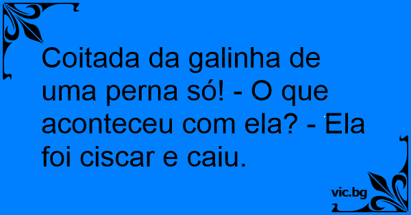 Coitada da gаlinhа de uma perna só! - O que aconteceu com ela? - Ela foi ciscar e caiu.