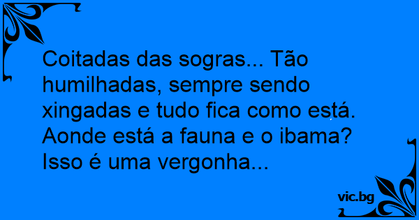 Coitadas das sogras... Tão humilhadas, sempre sendo xingadas e tudo fiса como está. Aonde está a fauna e o ibama? Isso é uma vergonha...