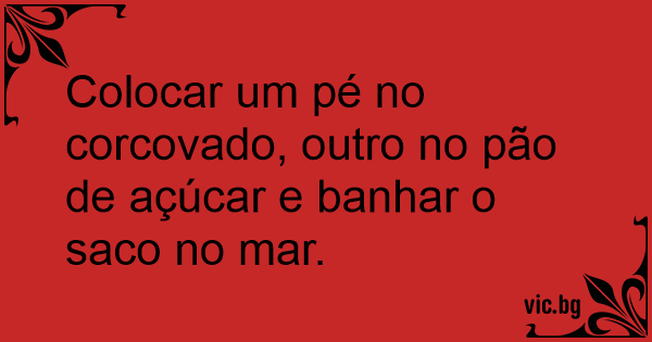 Colocar um pé no corcovado, outro no pão de açúcar e banhar o saco no mar.