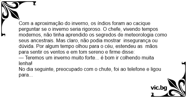 — Teremos um inverno muito forte... é bom ir colhendo muita lenha!