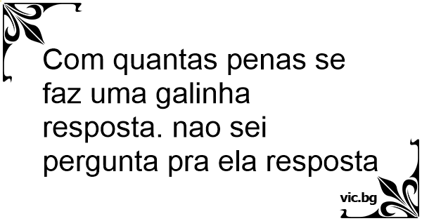Com quantas penas se faz uma gаlinhа resposta. nao sei pergunta pra ela resposta
