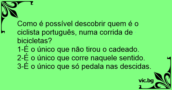 Como é possível descobrir quem é o ciclista português, numa corrida de bicicletas?