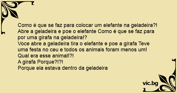 Como é que se faz para colocar um elefante na geladeira?!