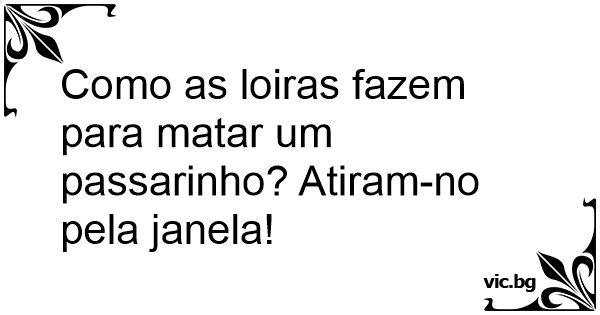 Como as loiras fazem para matar um passarinho? Atiram-no pela janela!
