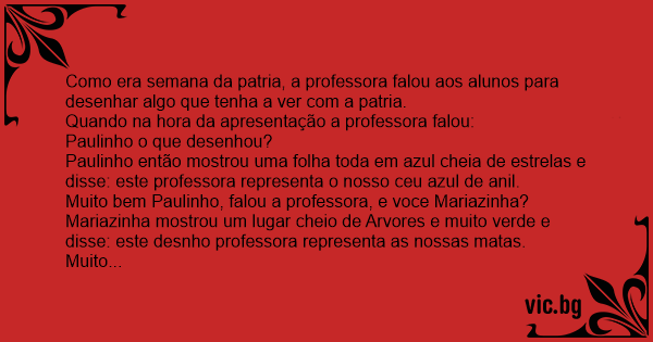 Muito bem Paulinho, falou a professora, e voce Mariazinha?