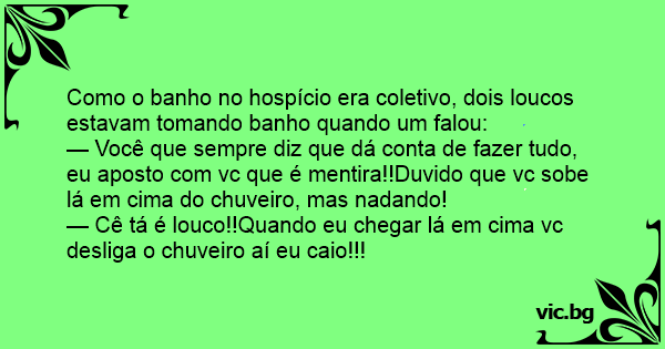 Como o banho no hospício era coletivo, dois loucos estavam tomando banho quando um falou: