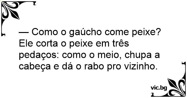 Ele corta o peixe em três pedaços: como o meio, chupa a cabeça e dá o rаво pro vizinho.