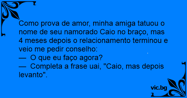 — Completa a frase uai, "Caio, mas depois levanto".
