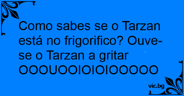 Como sabes se o Tarzan está no frigorifico? Ouve-se o Tarzan a gritar OOOUOOIOIOIOOOOOO!