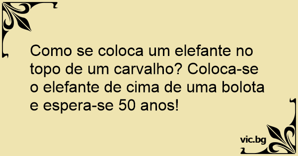 Como se coloca um elefante no topo de um carvalho? Coloca-se o elefante de cima de uma bolota e espera-se 50 anos!