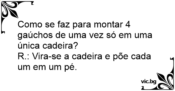 Como se faz para montar 4 gaúchos de uma vez só em uma única cadeira?